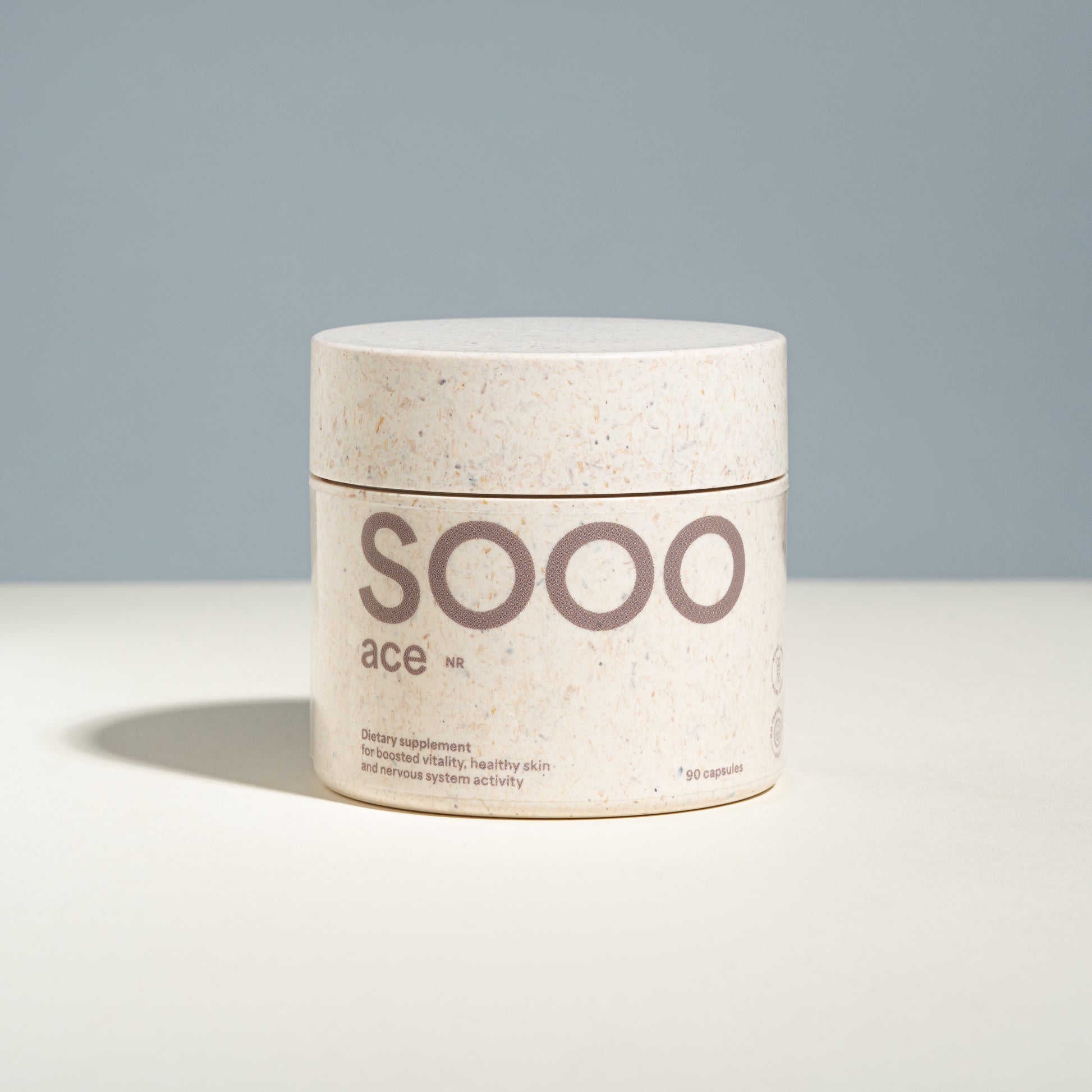 SOOO ace sudėtyje yra 300 mg nikotinamido ribosido (NR), kuris suteikia 120 mg niacino – svarbios maistinės medžiagos, padedančios kūnui paversti maistą energija, palaikančia ląstelių energijos procesus. Niacinas dalyvauja NAD (nikotinamido adenino dinukleotido) gamyboje – molekulės, būtinos ląstelių energijai, įskaitant ATP gamybą. Niacinas taip pat mažina nuovargį, palaiko sveiką nervų sistemą ir skatina lygią, sveiką odą. Sukurtas su 99,89 % grynumu, SOOO ace yra kasdienis energijos, dėmesio ir bendros gyvybingumo sąjungininkas.
